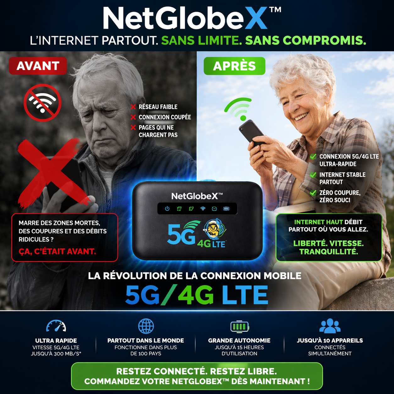Les opérateurs paniquent : ce petit boîtier capte la 5G dans 196 pays sans carte SIM ni abonnement. Voici les 5 raisons qui rendent NetGlobeX™ incontournable en 2026.